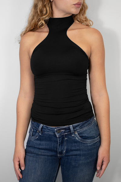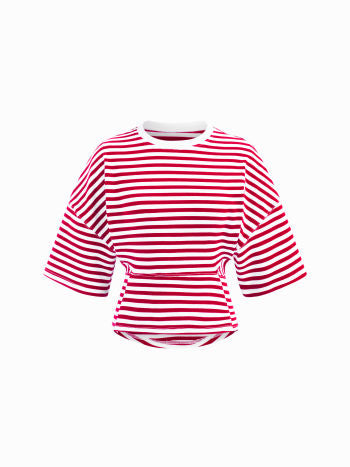 Asymmetrisk Randig Bomullstopp Med Rynk